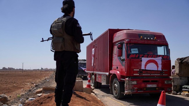 Potret Konvoi Bantuan Tempuh Jalur Konflik Sweida Suriah