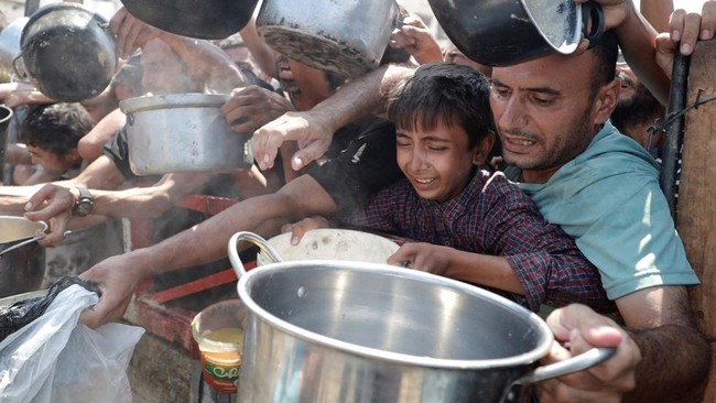 Gaza - Panci kosong terangkat tinggi, anak-anak menangis di antara kerumunan. Gaza tenggelam dalam krisis kelaparan yang belum terselesaikan.
