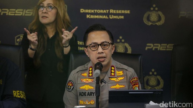 Kabid Humas Polda Metro Jaya Kombes Ade Ary Syam Indradi membuka konferensi pers pengungkapan hasil akhir penyelidikan kasus kematian ADP (39), diplomat Kementerian Luar Negeri (Kemlu) yang ditemukan dengan kondisi wajah terlilit lakban di kamar kos Menteng, Jakarta Pusat. Kesimpulan akhir soal penyebab kematian ADP ini disampaikan dalam agenda konferensi pers di Mapolda Metro Jaya, Jakarta, Selasa (29/7/2025).