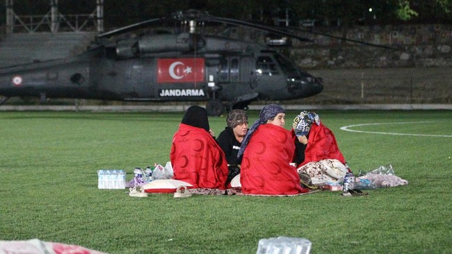 Turki - Gempa mengguncang wilayah Sindirgi, Turki barat, memaksa ratusan warga mengungsi ke stadion setempat. Mereka bermalam di tempat terbuka demi keselamatan.