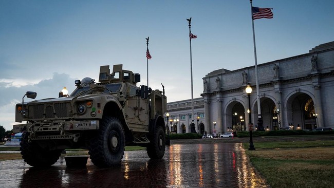 Washington DC - Kehadiran aparat bersenjata kembali mendominasi suasana ibu kota Amerika Serikat setelah Presiden Donald Trump mengerahkan Garda Nasional.