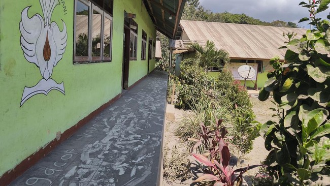 NTT - Abu vulkanik Gunung Lewotobi Laki-laki menyelimuti sekolah di Sikka, NTT. Aktivitas belajar diliburkan demi menjaga kesehatan siswa dan guru.