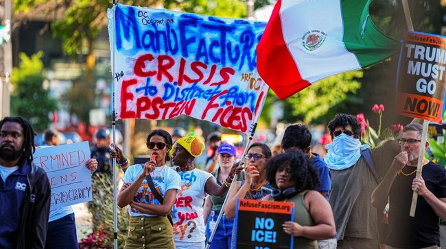 Washington DC - Suasana di Washington, D.C., memanas setelah gelombang protes pecah di kawasan U Street terkait Presiden Amerika Serikat Donald Trump kerahkan Garda Nasional.