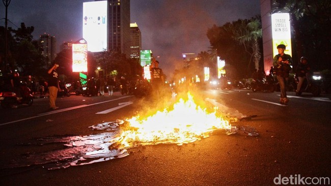 Bakar Spanduk! Massa Demo Sempat Kuasai Jalan Asia-Afrika Senayan
