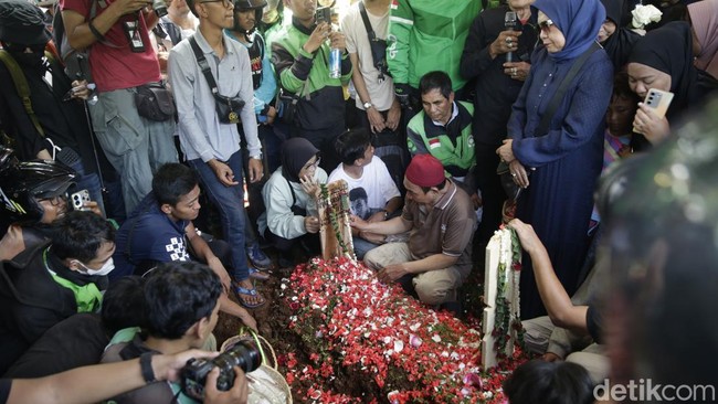 Jakarta - Suasana haru menyelimuti prosesi pemakaman Affan Kurniawan, pengemudi ojek online (ojol) yang tewas terlindas kendaraan taktis Brimob.