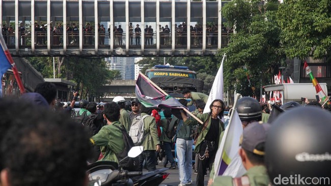 Jakarta - Massa aksi yang menuntut pengusutan tewasnya Affan Kurniawan, driver ojol dilindas rantis Brimob, mulai berdatangan ke Polda Metro Jaya. Aksi langsung panas.