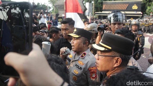 Jakarta - Wakapolda Metro Jaya Brigjen Dekananto Eko Purwono menemui massa yang menuntut keadilan atas tewasnya Affan Kurniawan. Janji anggota terlibat diproses hukum.