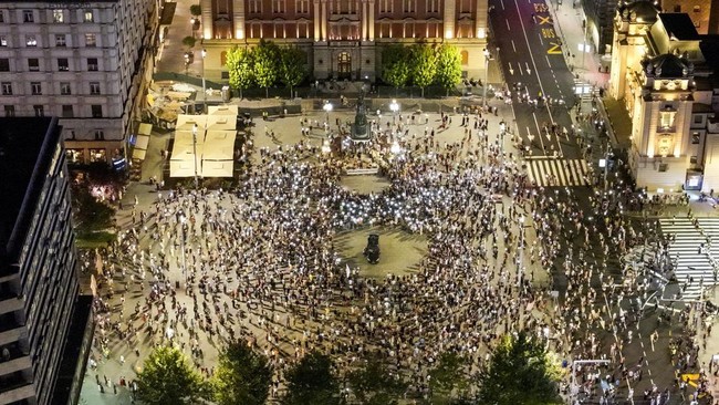 Serbia - Ribuan warga Serbia turun ke jalan di Beograd usai tragedi stasiun yang tewaskan 16 orang. Mereka menuntut keadilan bagi korban dan pemilu cepat ganti Presiden.
