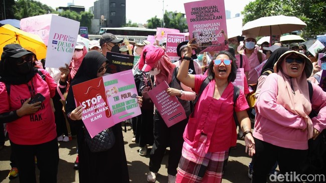 Ratusan Perempuan Serba Pink Gelar Demo Damai di DPR