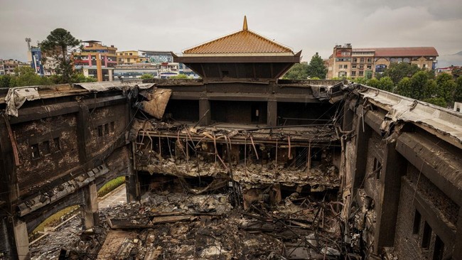 Nepal - Reruntuhan parlemen Nepal jadi saksi amarah rakyat usai demo berdarah menewaskan puluhan orang. Begini potret jejak kehancuran di Kota Kathmandu.