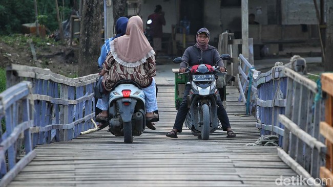 Bekasi - Warga Sukamekar, Bekasi, bangun jembatan apung dari kayu dan drum di atas Sungai CBL. Jembatan swadaya ini jadi akses vital antar desa setiap hari.