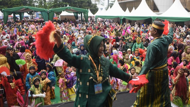 Samarinda - Ribuan siswa PAUD dan TK di Samarinda tampil menarikan Tari Anging Mammiri dan Sipatokaan. Acara ini jadi ajang edukasi sekaligus pelestarian budaya.