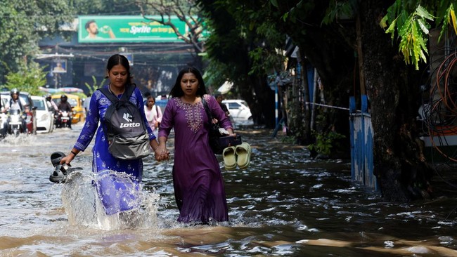 Meski begitu, warga tetap menjalani aktivitas sehari-hari di tengah genangan yang merendam, Kolkata, India, pada Rabu (24/9/2025). REUTERS/Sahiba Chawdhary