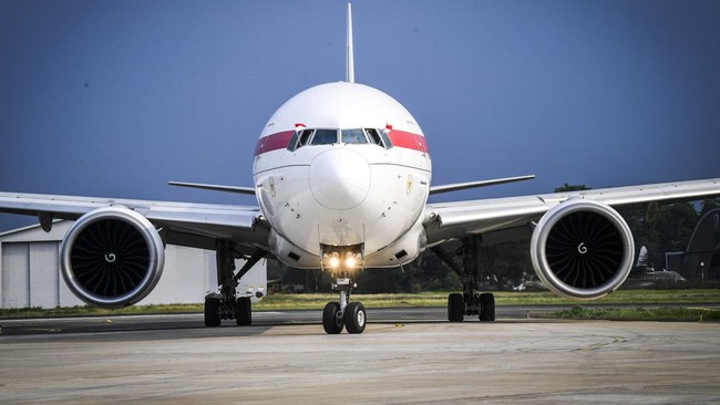 Pesawat Kepresidenan RI yang membawa Presiden Prabowo Subianto mendarat di Pangkalan Udara Halim Perdanakusuma, Jakarta, Sabtu (27/9/2025). Ia kembali usai menyampaikan pidato pada Sidang Umum PBB di New York serta kunjungan kenegaraan ke Jepang, Kanada, dan Belanda.
