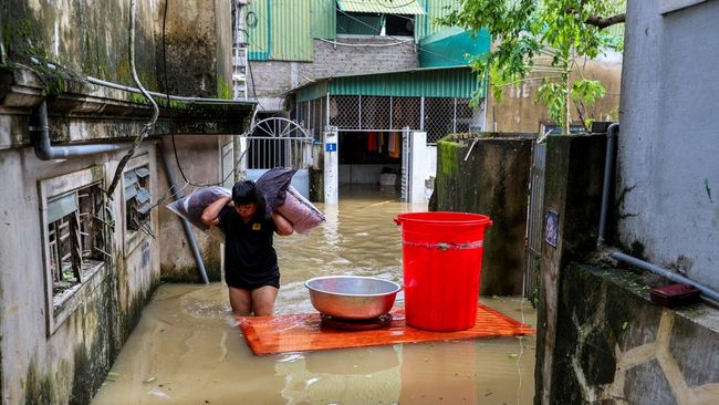 Banjir Rendam Nghe An, Warga Vietnam Evakuasi Kendaraan dan Barang