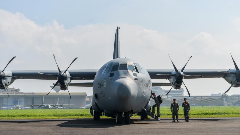 Kru pesawat Hercules TNI Angkatan Udara memasuki pesawat sebelum latihan dalam persiapan HUT TNI ke-80 di Bandara Husein Sastranegara, Bandung, Jawa Barat, Rabu (1/10/2025). ANTARA FOTO/Raisan Al Farisi