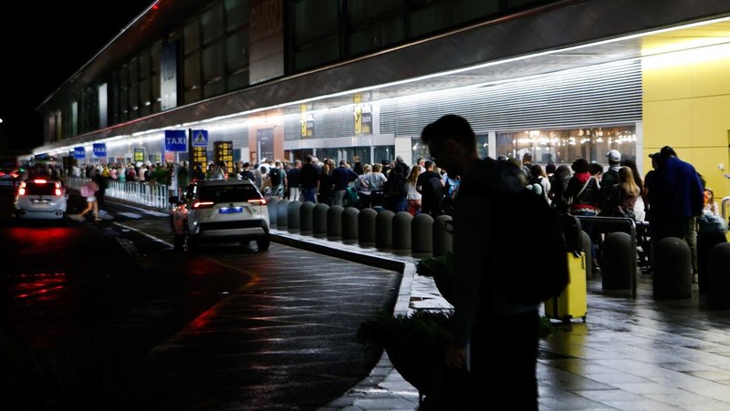 Wisatawan di Bandara Ibiza terjebak antrean panjang setelah hujan deras mengganggu jadwal penerbangan. REUTERS/Francisco Ubilla