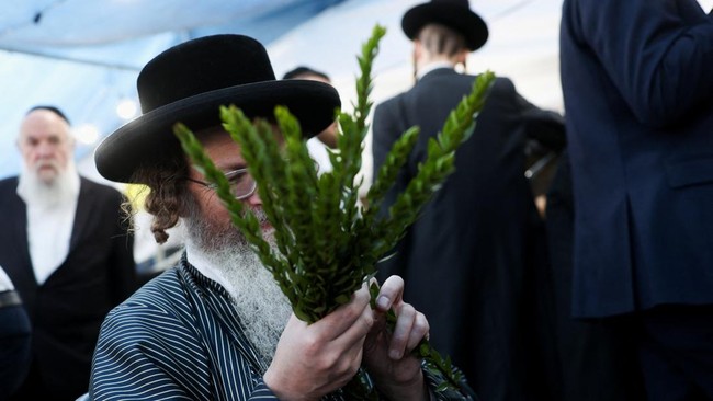 Israel - Menjelang perayaan hari raya Yahudi Sukkot, warga Yahudi Ultra-Ortodoks di Yerusalem tampak sibuk mempersiapkan perlengkapan ritual yang akan digunakan.
