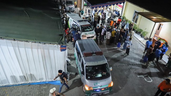 Surabaya - Suasana duka menyelimuti RS Bhayangkara Surabaya saat jenazah korban runtuhnya mushala Ponpes Al Khoziny dipulangkan. Tim DVI telah mengidentifikasi 17 korban.