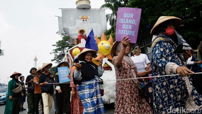 Dalam aksinya di depan Kementerian Kelautan dan Perikanan (KKP), Jakarta, Rabu (8/10/2025), warga menyoroti ancaman serius yang dihadapi pulau kecil akibat krisis iklim dan aktivitas reklamasi proyek swasta yang dinilai mengancam keberlanjutan ekosistem pesisir dan kehidupan masyarakat lokal.