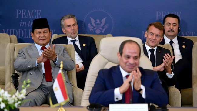 KTT membahas perdamaian Gaza itu digelar di Sharm El-Sheikh di Kairo, Mesir. Dalam KTT itu sekaligus ada penandatanganan penghentian perang di Gaza. Prabowo hadir dengan didampingi Menlu Sugiono dan Seskab Teddy Indra Wijaya. Prabowo tampak akrab dengan sejumlah pemimpin negara yang hadir. (Foto: Biro Sekretariat Presiden)