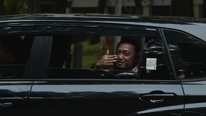 Panglima TNI Jenderal Agus Subiyanto tampak tiba di kediaman Presiden Prabowo dan melambaikan tangan ke arah awak media sebelum memasuki area rumah. Selain Panglima TNI, hadir pula beberapa pejabat negara lainnya seperti Menteri Sekretaris Negara Prasetyo Hadi, Menteri Pertahanan Sjafrie Sjamsoeddin, Kepala BIN Muhammad Herindra, serta sejumlah menteri lain dari kabinet. ANTARA FOTO/Fakhri Hermansyah