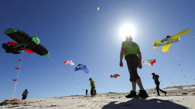 Cape Town - Langit biru Cape Town dipenuhi layang-layang saat penggemar berkumpul di Pantai Dolphin. Festival ini digelar untuk mendukung kesadaran kesehatan mental.