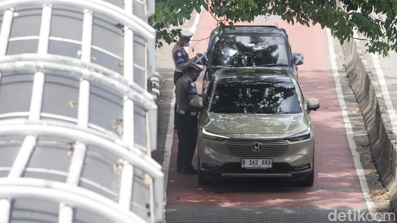 Pelanggar yang menerobos jalur TransJakarta seperti mobil dan sepeda motor ditindak di tempat.