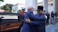 Momen Prabowo peluk Presiden Brasil Luiz Inácio Lula da Silva di Istana Merdeka, Jakarta. Presiden Brasil Luiz Inácio Lula da Silva tiba di Lanud Halim Perdanakusuma, Jakarta Timur pada Rabu sekitar pukul 17.45 WIB. Kedatangan Lula menandai dimulainya kunjungan kenegaraan ke Indonesia, sebuah momen penting yang mempererat hubungan persahabatan antara dua negara. Firda/detikcom