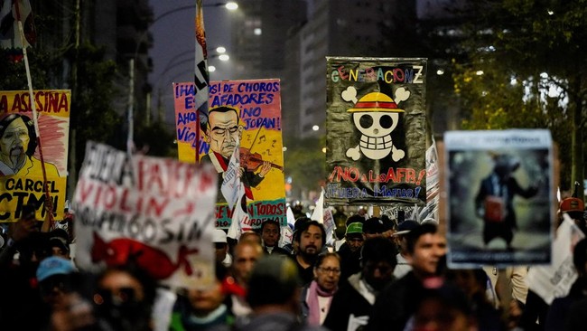 Peru - Ratusan anak muda turun ke jalan di Lima, Peru, memprotes lonjakan kejahatan dan kekerasan polisi. Mereka menuntut keadilan dan reformasi keamanan nasional.