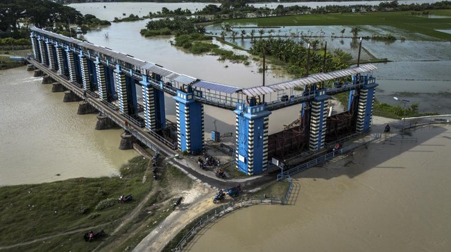 Kudus - Debit air di Bendung Wilalung, Kudus, meningkat tajam akibat hujan deras berhari-hari. Status bendungan kini awas usai debit mencapai 800 meter kubik per detik.