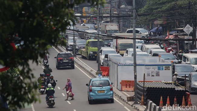 Jakarta - Kemacetan panjang terjadi di Jalan Mas Mansyur, Tanah Abang, akibat proyek utilitas. Arus dari Jalan Dr. Satrio menuju Tanah Abang tersendat parah.