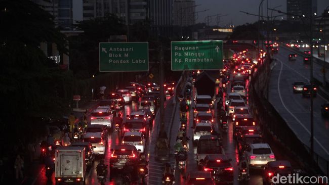 Penampakan Macet Panjang di Jalan TB Simatupang Usai Hujan Mengguyur