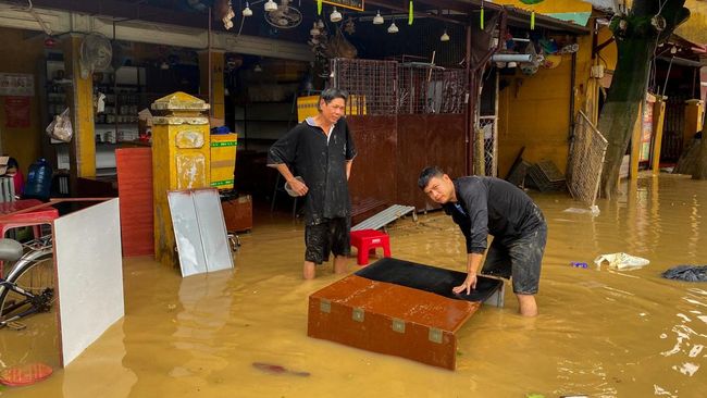 Jakarta - Banjir hebat di Hoi An, Vietnam tengah, rendam ribuan rumah, putus transportasi, dan tinggalkan 13 korban tewas, warga mulai bersihkan rumah saat air surut.