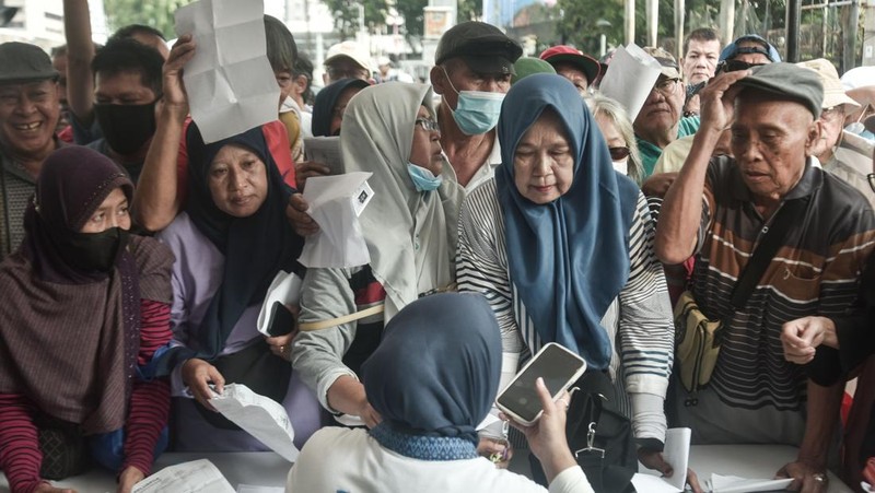 Sejumlah warga lanjut usia (lansia) antre untuk mendaftar dan perpanjangan program Kartu Layanan Gratis (KLG) pada Hari Bebas Kendaraan Bermotor (HBKB) di kawasan Bundaran HI, Jakarta Pusat, Minggu (2/11/2025). Sejak pagi, warga terutama para lansia—antusias mengantre untuk mendaftar maupun memperpanjang Kartu Layanan Gratis (KLG) yang dibuka oleh Pemprov DKI Jakarta. ANTARA FOTO/Fakhri Hermansyah