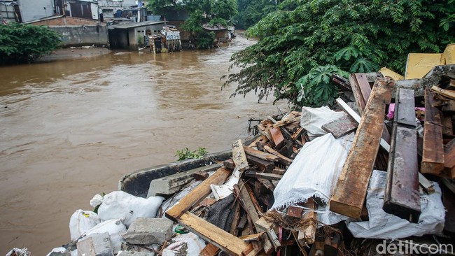 Jakarta - Deretan beton di bantaran Kali Ciliwung kawasan Manggarai, Jakarta, kini mulai tampak tertutup tanaman liar.