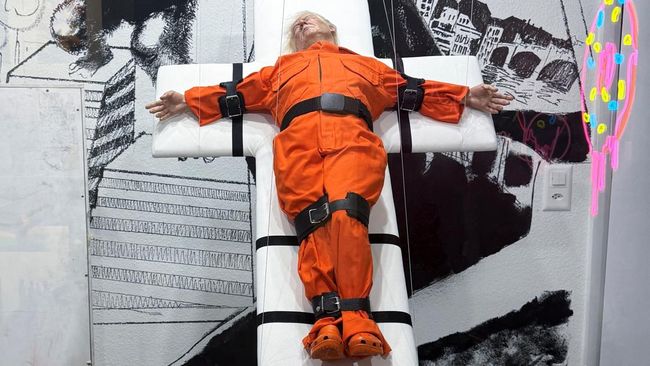 Swiss - Patung karya Mason Storm menampilkan Donald Trump disalib layaknya narapidana. Karya itu menuai perdebatan di kalangan publik dan seniman.