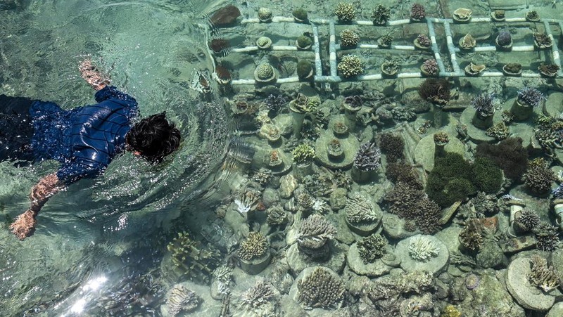 Di salah satu lokasi konservasi, seperti di Pulau Pramuka, Kepulauan Seribu, warga bersama petugas tampak rutin memantau pertumbuhan terumbu karang yang telah ditanam sebelumnya. Langkah ini menjadi bagian dari program rehabilitasi ekosistem laut berkelanjutan yang digencarkan pemerintah. ANTARA FOTO/Sulthony Hasanuddin