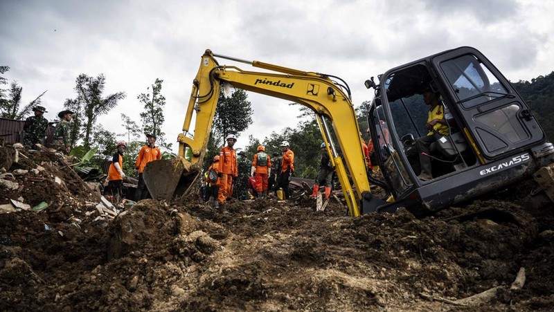 Pada hari keempat pukul 13.48 WIB, tim SAR gabungan berhasil mengevakuasi satu jenazah korban yang tertimbun tanah longsor, dan pencarian terhadap 25 korban lainnya yang diduga masih tertimbun terus dilanjutkan. Foto: ANTARA FOTO/Aprillio Akbar
