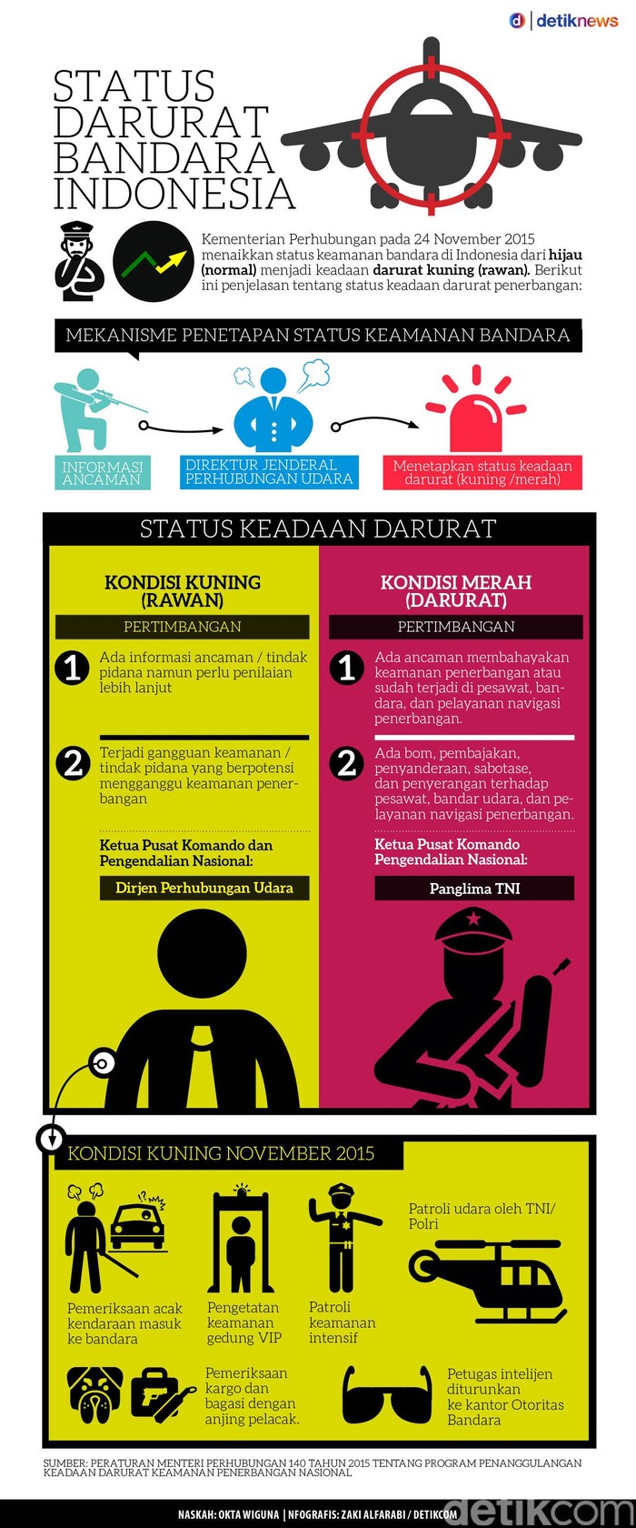Bandara-bandara di Indonesia meningkatkan status keamanannya dari hijau menjadi kuning. Apa arti warna-warna dalam status tersebut?