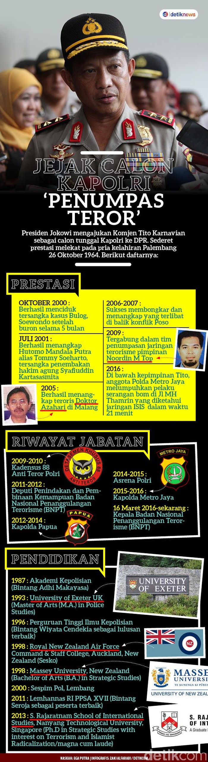 Jakarta - Presiden Jokowi mengajukan Komjen Tito Karnavian sebagai calon tunggal Kapolri ke DPR. Sederet prestasi melekat pada pria kelahiran Palembang 26 Oktober 1964. Berikut daftarnya: