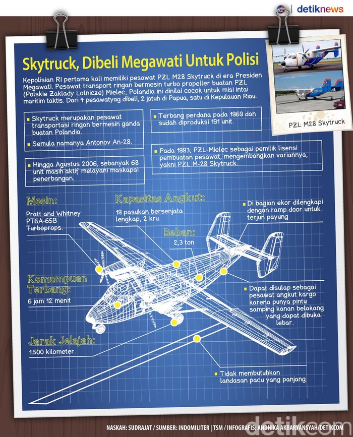 Skytruck, Dibeli Megawati Untuk Polisi Sudrajat - detikNews Senin, 05 Des 2016 12:00 WIB Foto: Ilustrasi: Andhika Akbaryansyah Jakarta - Kepolisian RI pertama kali memiliki pesawat PZL M28 Skytruck di era Presiden Megawati, 2001-2004. (jat/jat) Infografis Lainnya Infografis Masih Liburan? Cek Lokasi Serambi MyPertamina di Rest Area hingga Bandara Infografis Pariwisata RI Catat Kinerja Solid di 2025, Devisa Capai US$ 13,82 Adhyaksa Awards 2025 Ini 6 Orang Sosok Jaksa Teladan Penerima Adhyaksa Awards 2025
