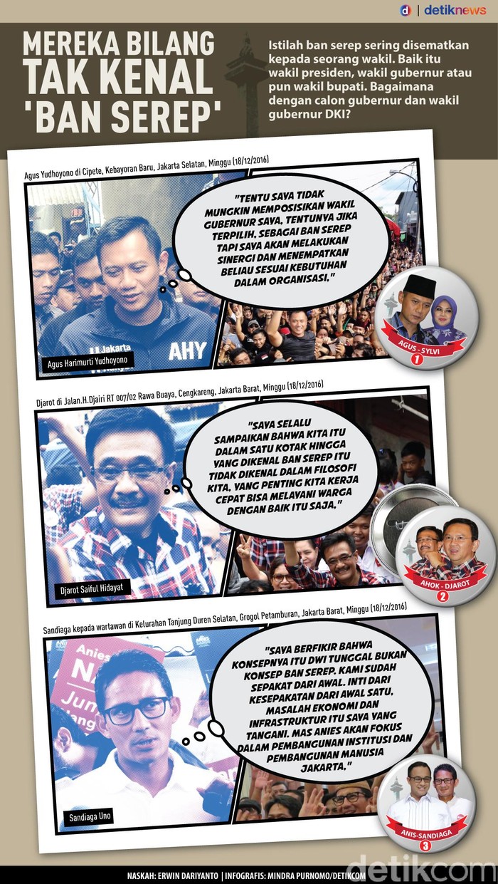 Jakarta - Istilah ban serep sering disematkan kepada seorang wakil. Baik itu wakil presiden, wakil gubernur atau pun wakil bupati. Bagaimana dengan calon gubernur dan wakil gubernur DKI?