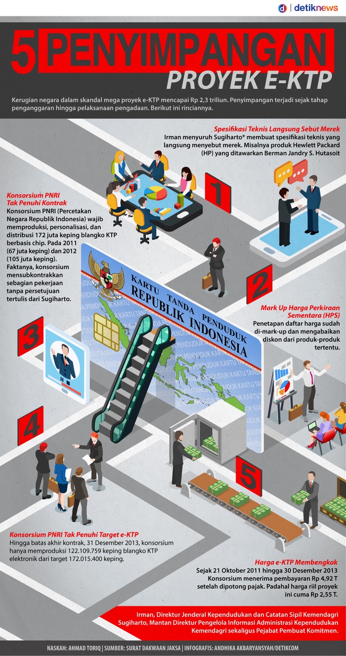 Jakarta - Kerugian keuangan negara gara-gara skandal proyek e-KTP mencapai Rp 2,3 triliun dari total nilai proyek Rp 5,9 triliun. Bukan cuma tahap penganggaran, penyimpangan terjadi pada tahap pelaksanaan pengadaan e-KTP.