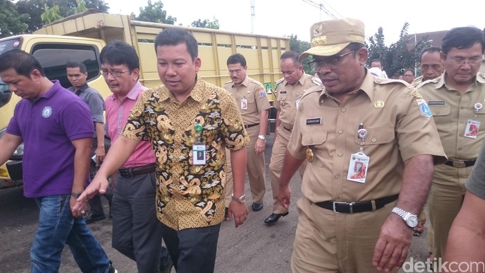 Plt DKI Sumarsono mengecek kesiapan Pasar Induk Jakarta Timur jelang Ramadan. Foto: Nur Indah/detikcom |