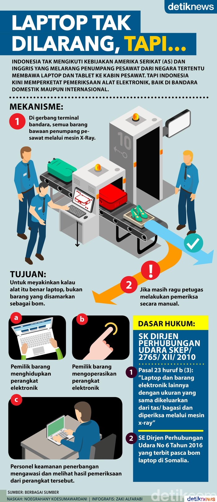 Jakarta - Indonesia tak mengikuti kebijakan Amerika Serikat (AS) dan Inggris yang melarang penumpang pesawat dari negara tertentu membawa laptop dan tablet ke kabin pesawat. Tapi Indonesia kini memperketat pemeriksaan alat elektronik, baik di bandara domestik maupun Internasional.