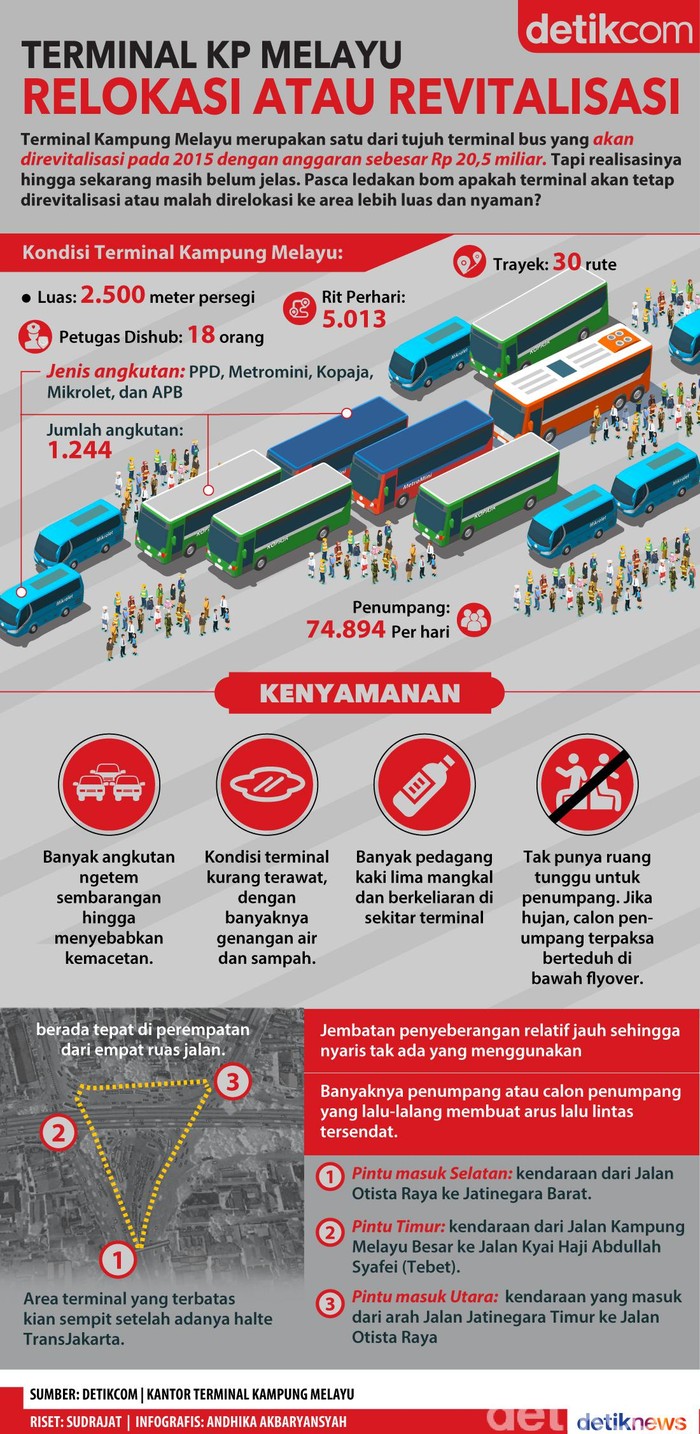 Jakarta - Terminal Kampung Melayu yang beroperasi sejak 1968, kondisinya kian semrawut dan kotor. Pasca ledakan bom Rabu (24/5/2017), akan direvitalisasi atau direlokasi?