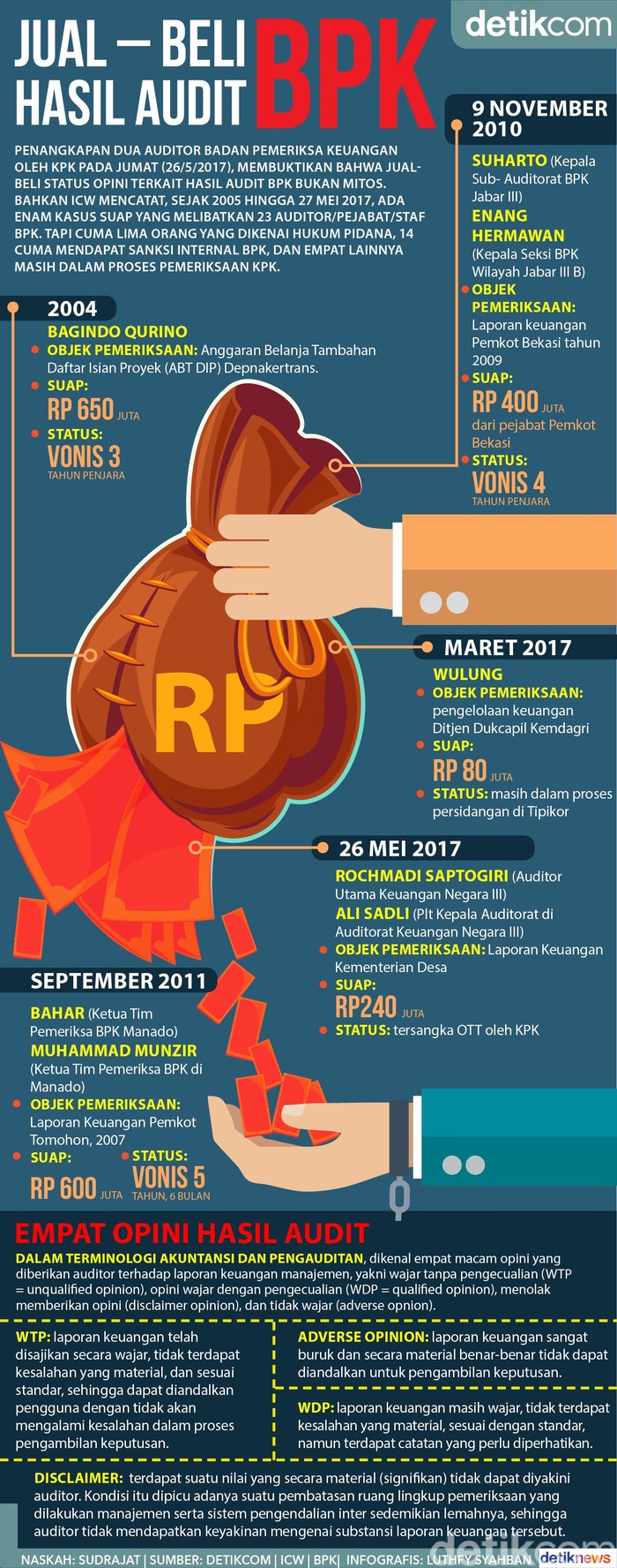 Jakarta - Jual-beli status opini terkait hasil audit Badan Pemeriksa Keuangan ternyata tak sebatas isu atau mitos. ICW menyebut ada 23 kasus.