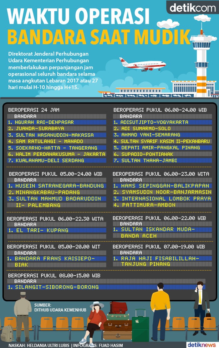 Jakarta - Direktorat Jenderal Perhubungan Udara Kementerian Perhubungan memberlakukan perpanjangan jam operasional seluruh bandara selama masa angkutan Lebaran 2017 atau 27 hari mulai H-10 hingga H+15