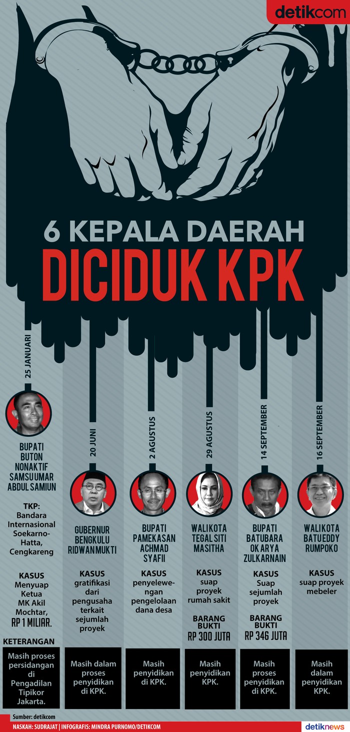Infografis 2017, Enam Kepala Daerah Kena OTT KPK Sudrajat - detikNews Senin, 18 Sep 2017 07:36 WIB Mindra Purnomo Jakarta - Dari 15 operasi tangkap tangan oleh KPK sepanjang 2017, enam diantaranya melibatkan kepala daerah (jat/jat) Infografis Lainnya Infografis Masih Liburan? Cek Lokasi Serambi MyPertamina di Rest Area hingga Bandara Infografis Pariwisata RI Catat Kinerja Solid di 2025, Devisa Capai US$ 13,82 Adhyaksa Awards 2025 Ini 6 Orang Sosok Jaksa Teladan Penerima Adhyaksa Awards 2025 ott kpk